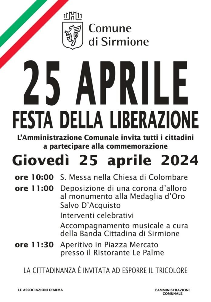 L’Amministrazione Comunale di Sirmione invita tutti i cittadini a partecipare attivamente agli eventi e a esporre il tricolore in segno di rispetto e memoria. Questa giornata rappresenta un’importante occasione per celebrare i valori di libertà e resistenza che continuano a ispirare la società italiana.