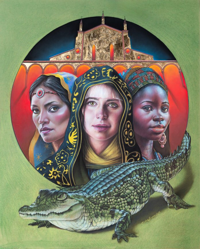 Il sagrato del Santuario della Beata Vergine delle Grazie si trasformerà in una galleria d’arte a cielo aperto, dove i madonnari raffigureranno icone mariane venerate in tutto il mondo. Questa forma di street art sacra e popolare, seppur effimera, unisce tradizione cristiana e riti presenti in diverse culture, trovando a Grazie la sua capitale internazionale con un focus sull’iconografia mariana. L’immagine ufficiale del seicentenario, creata da Michela Bogoni, vincitrice 2024 nella categoria “Paradiso”, raffigura tre volti mariani di diverse etnie in un abbraccio di pace e speranza, con il Santuario e il suo iconico coccodrillo a fare da sfondo.