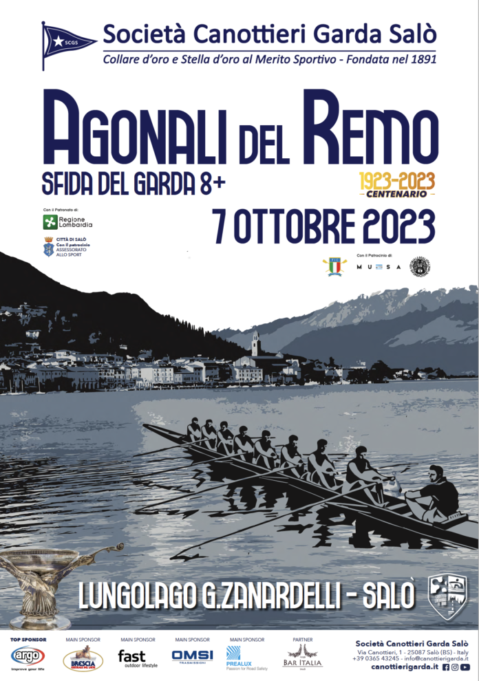 Sabato 7 ottobre si terrà l’Agonali Del Remo, la Sfida Del Garda 8+, nell’incantevole Golfo di Salò. Questa competizione di canottaggio è una delle più spettacolari in Italia e quest’anno si celebrerà la sua edizione del centenario.