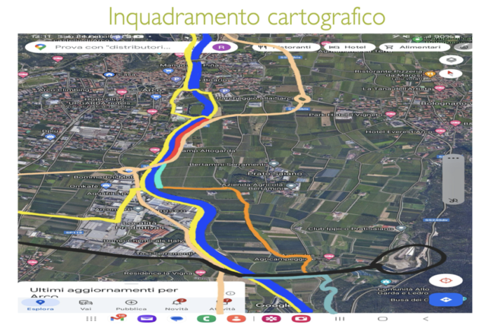 Nell’immagine pubblicata sul sito del comune di Arco si possono vedere in rosso e azzurro chiaro il nuovo possibile percorso.