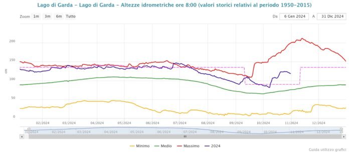 Con l'arrivo di nuove precipitazioni, il deflusso delle acque del Garda è stato incrementato a 140 metri cubi al secondo. Attualmente, il livello del lago si attesta intorno ai +123 cm sullo zero idrometrico, un dato eccezionale per il mese di ottobre che non si registrava dal 1998. Gli enti gestori hanno dovuto adottare misure straordinarie per mantenere la situazione sotto controllo.