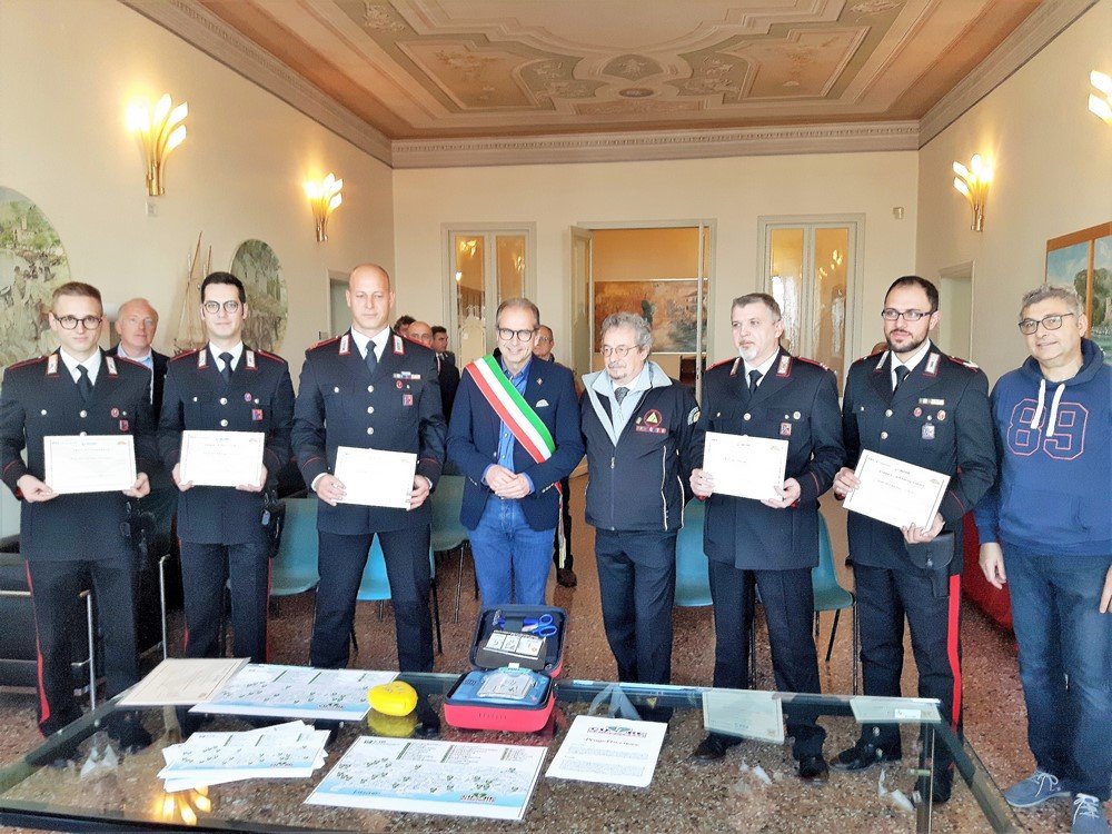 Questa mattina in municipio il sindaco Ivan De Beni ha consegnato ai carabinieri in forza al locale distaccamento di Bardolino i diplomi d’abilitazione all’utilizzo del defibrillatore. Adesso tutti gli uomini del comandante Luca Scolari, da tempo già in possesso del diploma, sono in grado d’intervenire in caso d’arresto cardiaco in atto.
