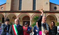 La giornata del 15 agosto è iniziata con la santa messa solenne “In assumptione Beatae Mariae Virginis“, presieduta da S. E. Mons. Roberto Busti, vescovo di Mantova e animata dalla Schola cantorum vicariale. Il Santuario a fatica è riuscito a contenere le migliaia di fedeli. Subito dopo la messa il vescovo Busti, accompagnato dal Sindaco di Curtatone Antonio Badolato e da tutta la giunta comunale al completo (assessori Benatti, Imperiali, De Donno, Ferrari e Bottani), ha fatto visita ai Madonnari ancora intenti a lavorare sul Sagrato. Un breve commento, un saluto, uno scambio di opinioni sul dipinto ammirato e infine una visita alla esposizione “Cento anni di bicicletta” ospitata sul fianco del sagrato, per vedere da vicino le biciclette, i cimeli e i ricordi raccolti dal curatore, il cav. Virgilio Gazzetta. Tra questi anche una maglia autografa di Marco Pantani, color giallo, direttamente dal “Tour de France“.