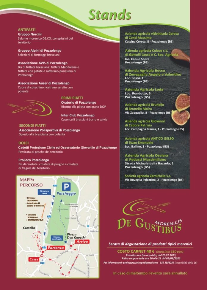 L’evento avrà luogo lungo le strade del Castello e per le vie del centro storico di Pozzolengo, un comune che sorge sulle colline moreniche e che vanta una tradizione enogastronomica di grande rilievo. Durante la serata, i partecipanti avranno l’opportunità di assaporare le specialità locali, scoprendo i sapori autentici del territorio.
