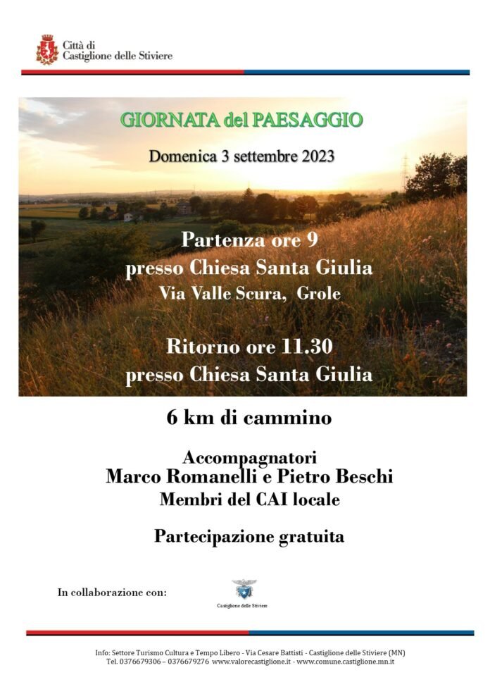 Il 3 settembre 2023 è una data da segnare in agenda per tutti gli amanti della natura e del paesaggio: avrà infatti luogo la Giornata del Paesaggio a Castiglione D/Stiviere. Un appuntamento consolidato che permette ai residenti e ai turisti di vivere un’esperienza unica a stretto contatto con il territorio circostante.