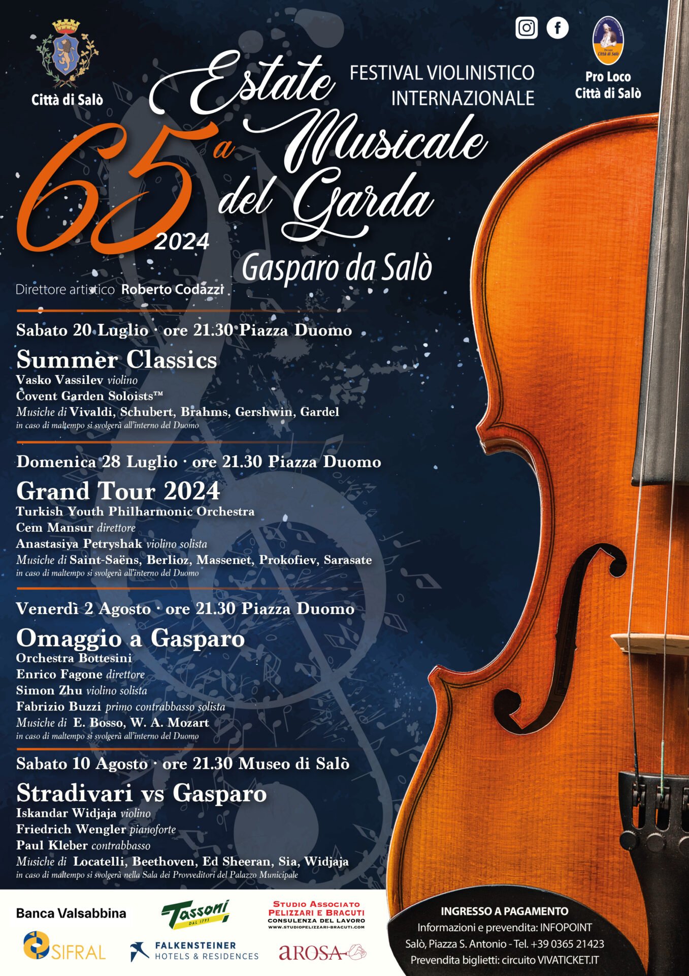 La città di Salò si prepara ad accogliere la 65ª edizione dell’Estate Musicale del Garda, un rinomato festival violinistico internazionale intitolato a “Gasparo da Salò”. L’evento, che si svolgerà in diverse location suggestive, vedrà la partecipazione di artisti di fama mondiale e promette serate indimenticabili all’insegna della grande musica.