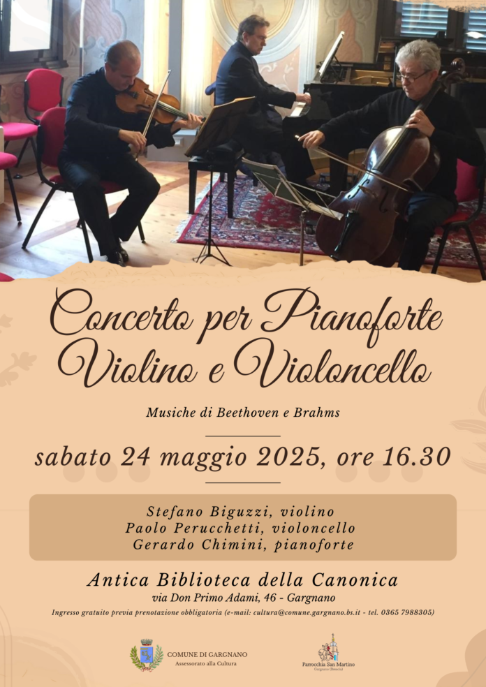 Infine, il mese culminerà con un affascinante concerto previsto per sabato 24 maggio alle ore 16.30, sempre presso l’Antica Biblioteca della Canonica. Il programma musicale include opere di Beethoven e Brahms eseguite da talentuosi musicisti: Stefano Biguzzi al violino, Paolo Perucchetti al violoncello e Gerardo Chimini al pianoforte. Anche in questo caso l’ingresso è gratuito ma si richiede prenotazione inviando una email a cultura@comune.gargnano.bs.it.