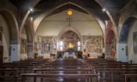 La facciata chiude la prospettiva del sagrato con il caratteristico profilo a capanna; l’ingresso è riparato da un sobrio protiro ad arco acuto: un accenno di architettura gotica ripresa anche dalle due grandi finestre monofore trilobate. Varcata la soglia ci si immerge nella penombra della chiesa; una sola navata caratterizzata da archi traversi e tetto in legno a vista conduce sino all’altare maggiore. All’interno del Santuario si possono ammirare numerosi affreschi che rappresentano l’elemento artistico di maggior interesse, come l’Annunciazione che campeggia nell’abside, quelli della “Cappella dei Santi” e della “Cappella della Trinità”, che prendono il nome dall’affresco più significativo che in esse si trova. All’interno di una cornice che richiama l’architettura classica appaiono quattro figure, ritratte con sapiente grazia compositiva e gradevoli accostamenti cromatici. Vale la pena soffermarsi anche presso la figura del Cristo morto, che richiama lo stile del grande Mantegna.