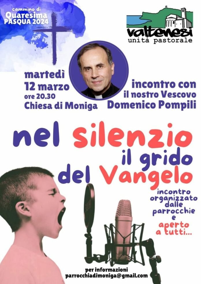 L’evento si svolgerà nella suggestiva cornice della chiesa di Moniga, a partire dalle 20.30. “Nel silenzio il grido del Vangelo”, questo il titolo dell’appuntamento, promette di essere un’occasione unica per i fedeli e per tutti coloro che cercano momenti di pace interiore e profonda comunione spirituale. La presenza del vescovo Pompili e il tema scelto, intrinsecamente legato alla quaresima, rendono questo incontro un momento privilegiato per approfondire la propria fede e riscoprire il valore del silenzio nel percorso spirituale cristiano.
