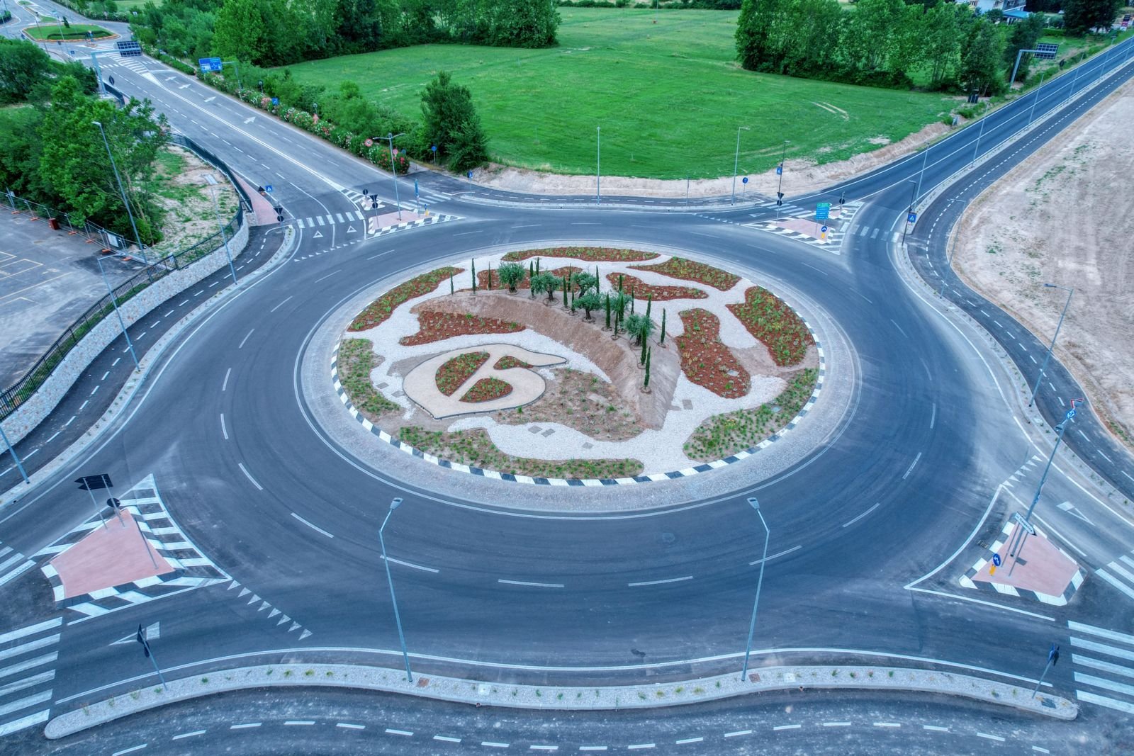 Nella progettazione della rotatoria, è stata data grande importanza alla valorizzazione del paesaggio circostante. Sono state create aree verdi con olivi, cipressi e piante erbacee perenni, che non solo offriranno uno scenario suggestivo,
