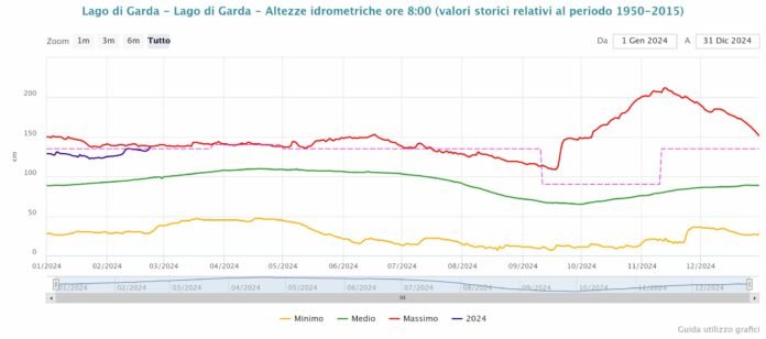 Livelli del lago di Garda a +136cm sopra lo zero idrometrico: il lago è pieno