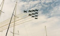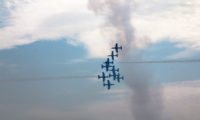 Si sono svolte stamane nei cieli dei comuni di Manerba e Moniga del Garda le prove generali dell'”Air Show Valtenesi del Garda”, memorial Francesco Agello. Migliaia di persone dislocate lungo i litorali dei due comuni e nel parco naturale della Rocca di Manerba per assistere all’anteprima di quello che sarà domani lo spettacolo verro e proprio della Pattuglia Acrobatica Nazionale, meglio identificata come “Frecce Tricolori”. Sarà, come ha detto la speaker ufficiale della manifestazione “il Tricolore più lungo del mondo” quello disegnato nei cieli gardesani dalla Pattuglia Acrobatica e che vedrà l’esecuzione completa del programma ufficiale con le classiche 18 figure.