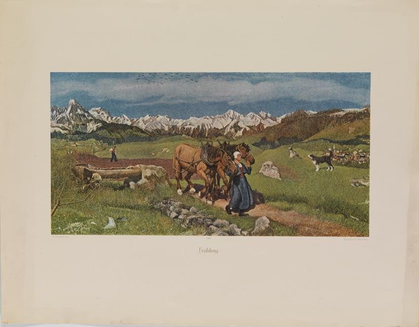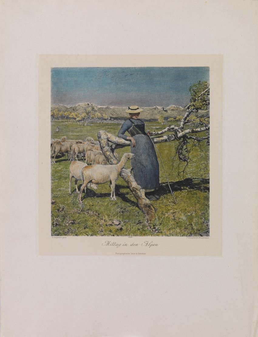 Dopo la monografia del 1913, poi ristampata in più edizioni, con l’introduzione di Gottardo, seguono numerose tavole in bianco e nero e a colori, riprodotte dalle celeberrime case editrici tedesche Photographische Union di Monaco di Baviera e Bruckmann, a cui si devono le principali raccolte di Photogravure dei grandi maestri dell’antichità e della contemporaneità. Accanto alle grandi tavole di Bruckmann con le riproduzioni quasi fac-similari dei più importanti capolavori segantiniani, destinate non solo all’editoria, ma anche alla vendita, in mostra sono esposte pure le piccole acqueforti realizzate dai figli Gottardo e Mario, conservate al Mart, concepite come cartolina postale.