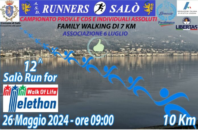 Tutto è pronto per la 12ma edizione della Salò run for Telethon, da qualche anno inserita all’interno del calendario nazionale Fidal. L’appuntamento è fissato per domenica 26 maggio sul Garda, con un duplice obiettivo: riuscire a percorrere e terminare il tracciato da 10 chilometri e battere il primato.