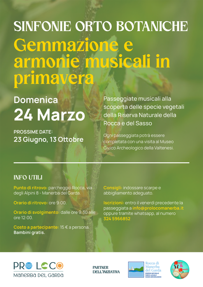 Le Sinfonie Orto Botaniche sono un’iniziativa all’insegna della natura e della musica, organizzate dalla Pro Loco di Manerba del Garda, in collaborazione con l’Associazione Capra e Cavoli. Queste passeggiate musicali guidate si svolgono all’interno della Riserva Naturale della Rocca e del Sasso di Manerba del Garda, offrendo un’esperienza immersiva nella natura e nella biodiversità locale.