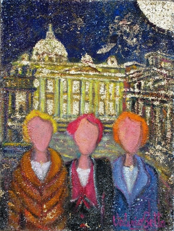 In foto il quadro di Valerio Betta “Aspettando il nuovo papa”, olio e oro su