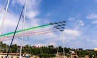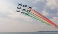 Con la folla delle grandi occasioni, almeno 200 mila persone, traffico praticamente bloccato dalle 9 fino alle 14 sulle strade del territorio per l’Air Show della Valtenesi del Garda, memorial Francesco Agello, con lo spettacolo della Pattuglia Nazionale Acrobatica, le Frecce Tricolori.