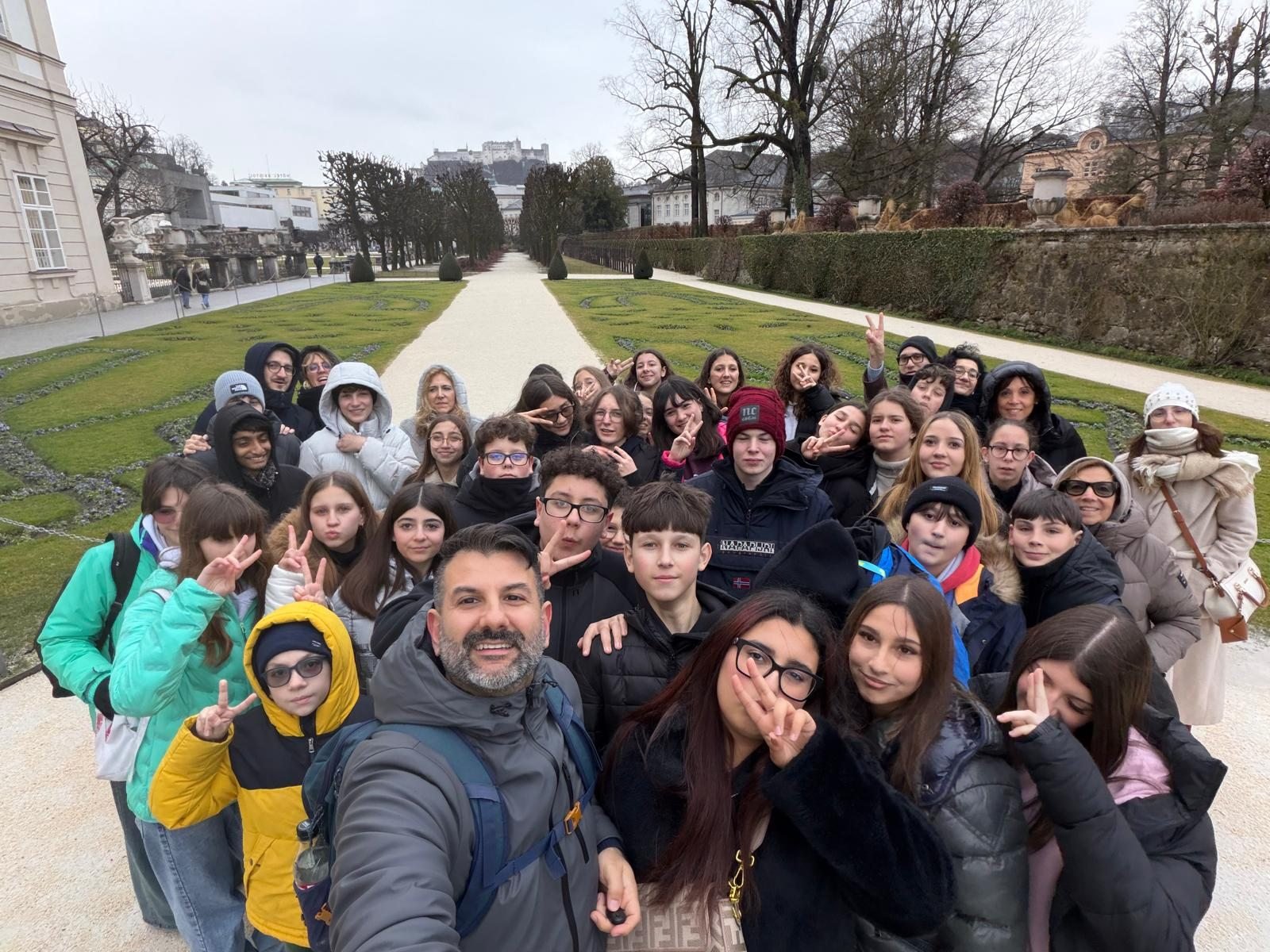 Il viaggio si è articolato in due giornate intense e significative. Martedì 24 febbraio la comitiva ha visitato la città di Salisburgo, con una tappa al Castello di Mirabell, costruito agli inizi del Seicento. Questo edificio storico, che ha ospitato la sede municipale e la biblioteca nazionale, rappresenta una delle attrazioni più rilevanti del territorio austriaco. Inoltre, i ragazzi hanno potuto visitare la casa natale di Wolfgang Amadeus Mozart, luogo che conserva la memoria dell’infanzia e dell’adolescenza del celebre compositore, già noto per il suo talento precoce nella musica.